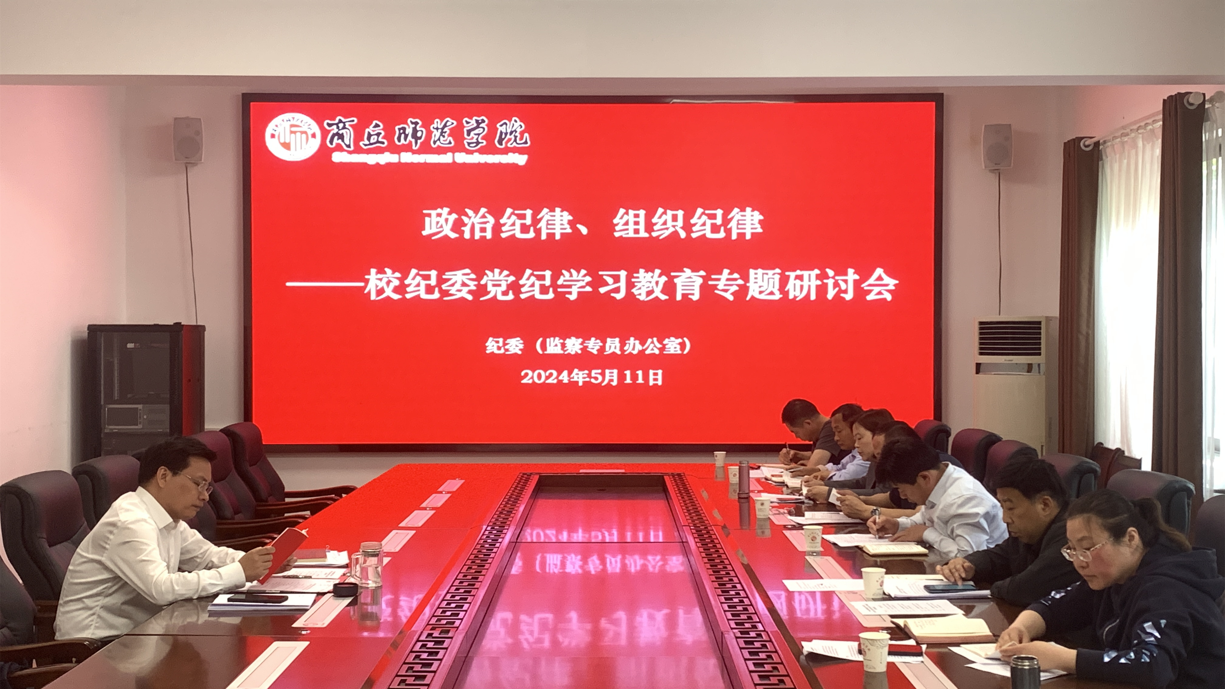 5月11日,校纪委在梁园校区归德楼召开党纪学习教育专题学习研讨会议,深入学习贯彻习近平总书记关于加强党的纪律教育的重要论述,传达学习中央纪委、省纪委有关会议精神,研究贯彻落实举措。校纪委书记、监察专员何瑞强主持会议并讲话。
