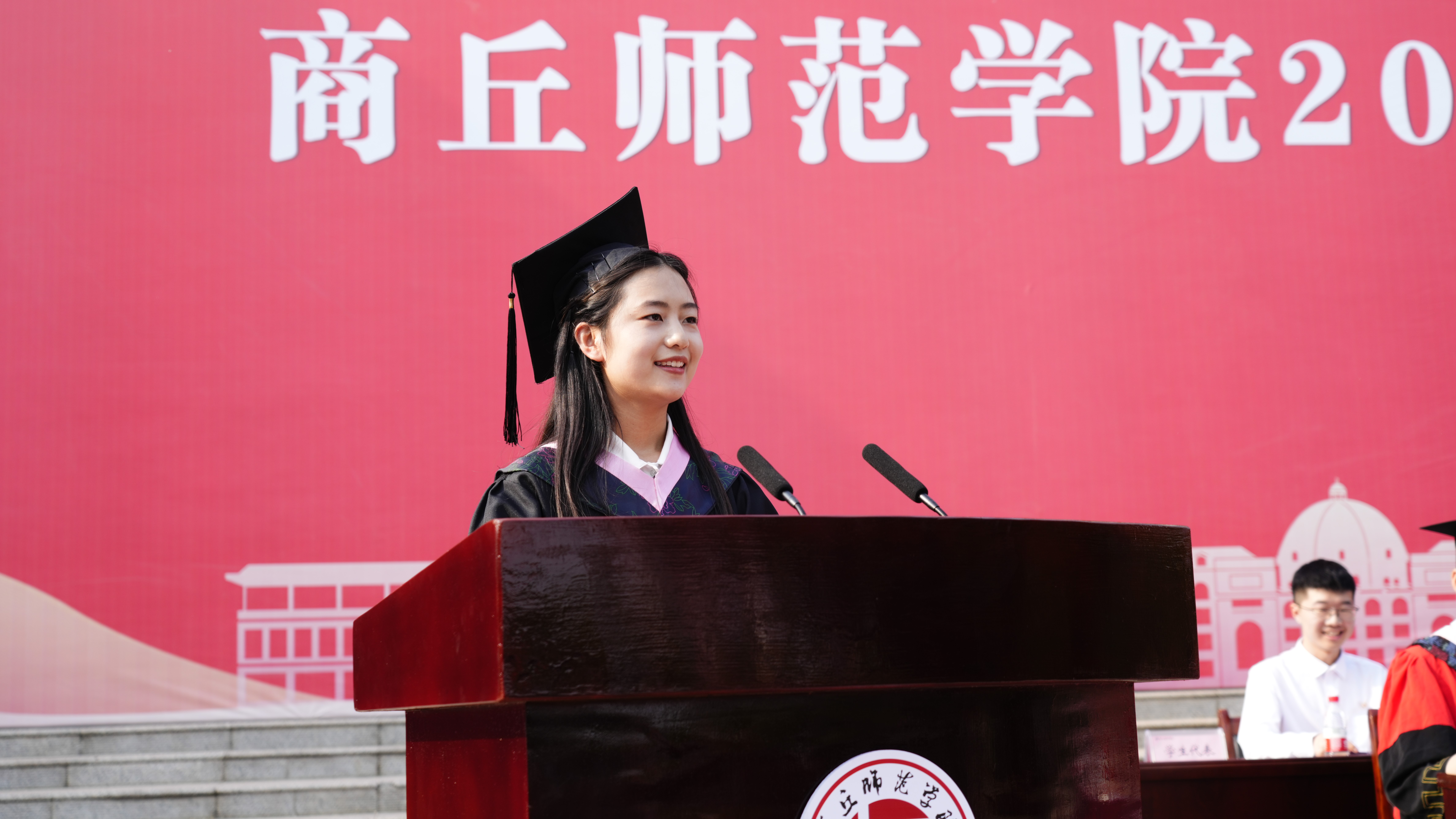 学校黄河故道生态保护研究中心主任朱新玉教授作为教师代表发言。她鼓励毕业生带着对学校的感恩之情,坚持梦想,厚植家国情怀,保持好奇,持续努力学习,注重协作,学会合作共赢,关爱他人,以爱回馈社会,保持一颗平常心,勇敢面对人生的每一次挑战。