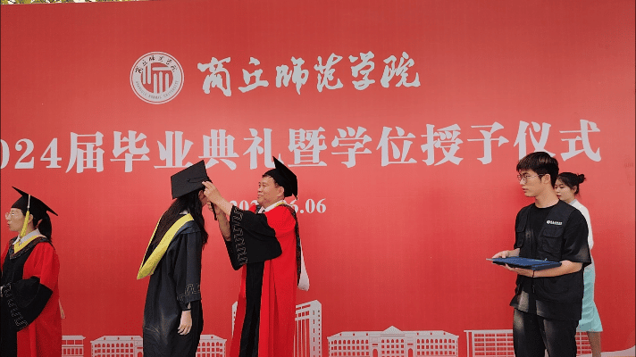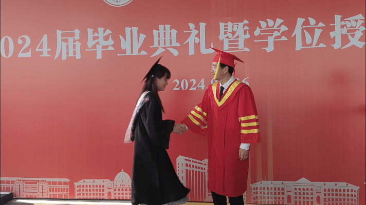 副校长翟滨为毕业生拨穗正冠、颁发学位证书