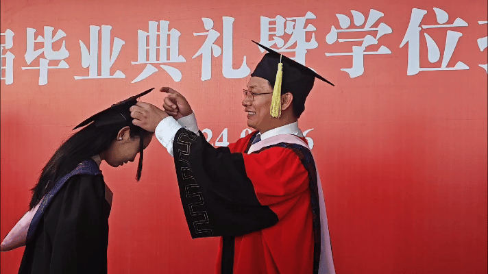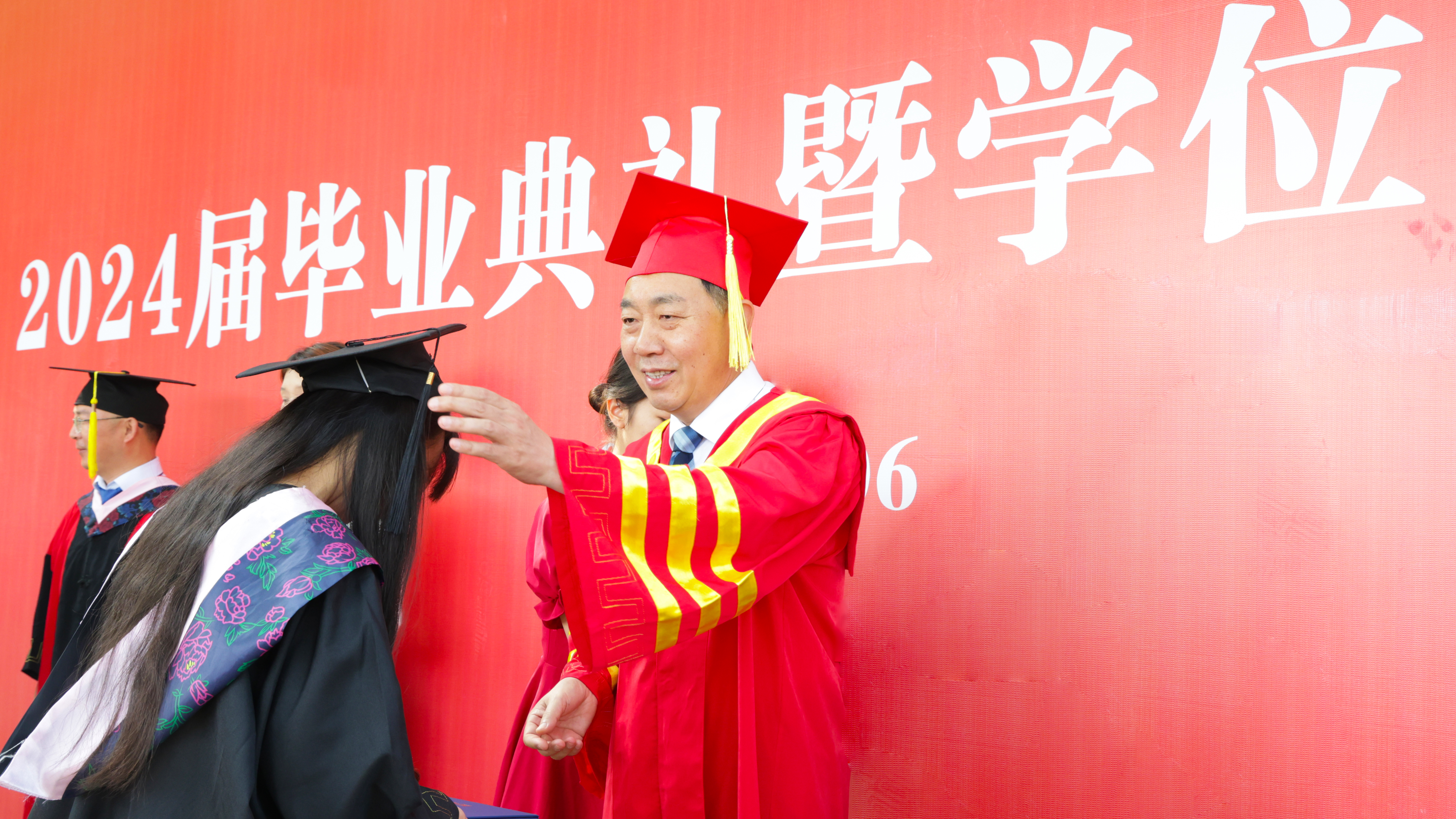 副校长王晓征为毕业生拨穗正冠、颁发学位证书