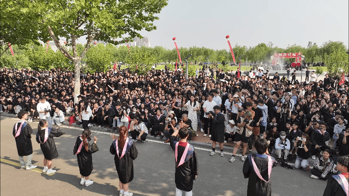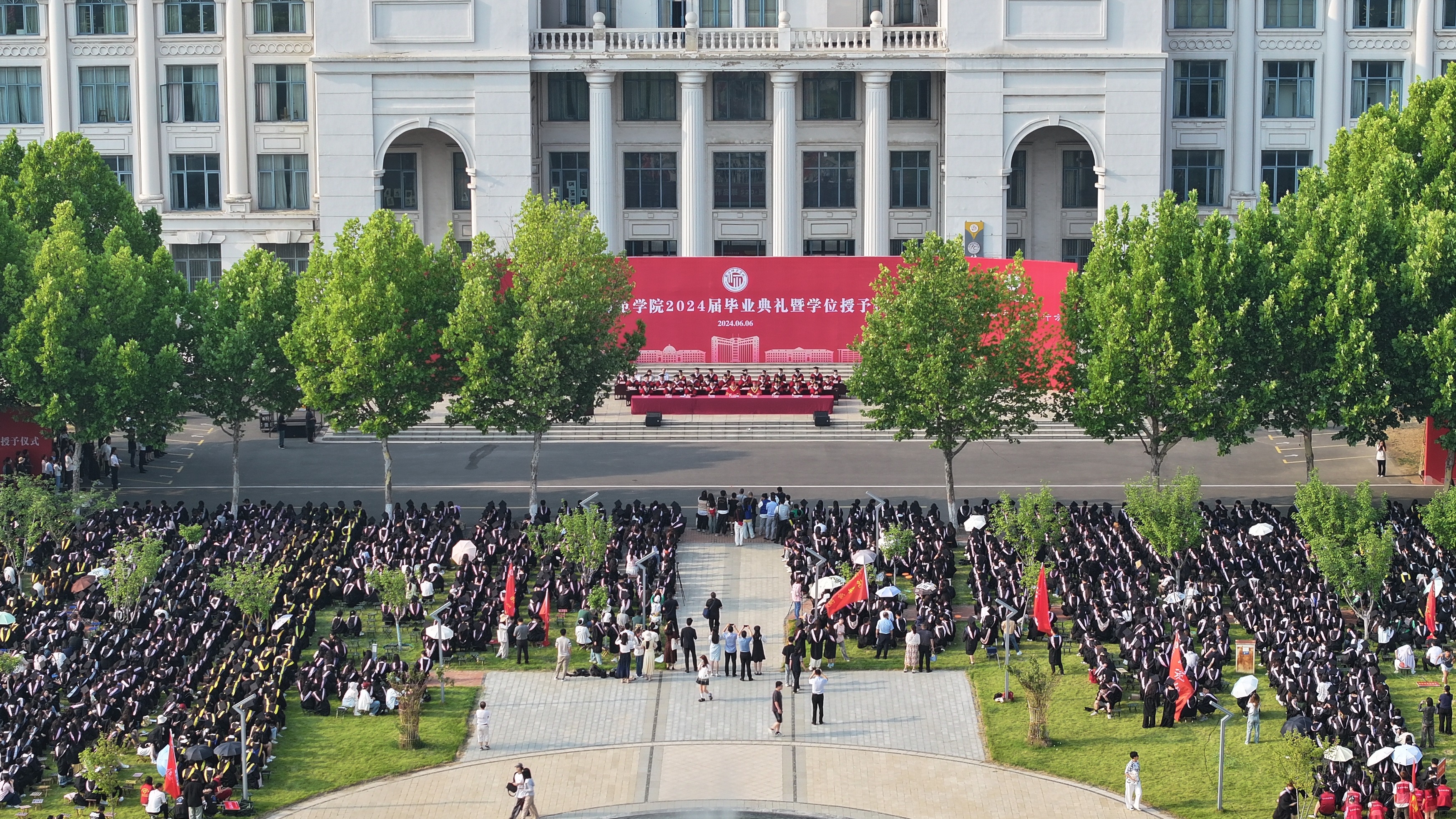 各学院分别为获得学位的本科毕业生颁发学位证书、拨穗正冠并合影留念。