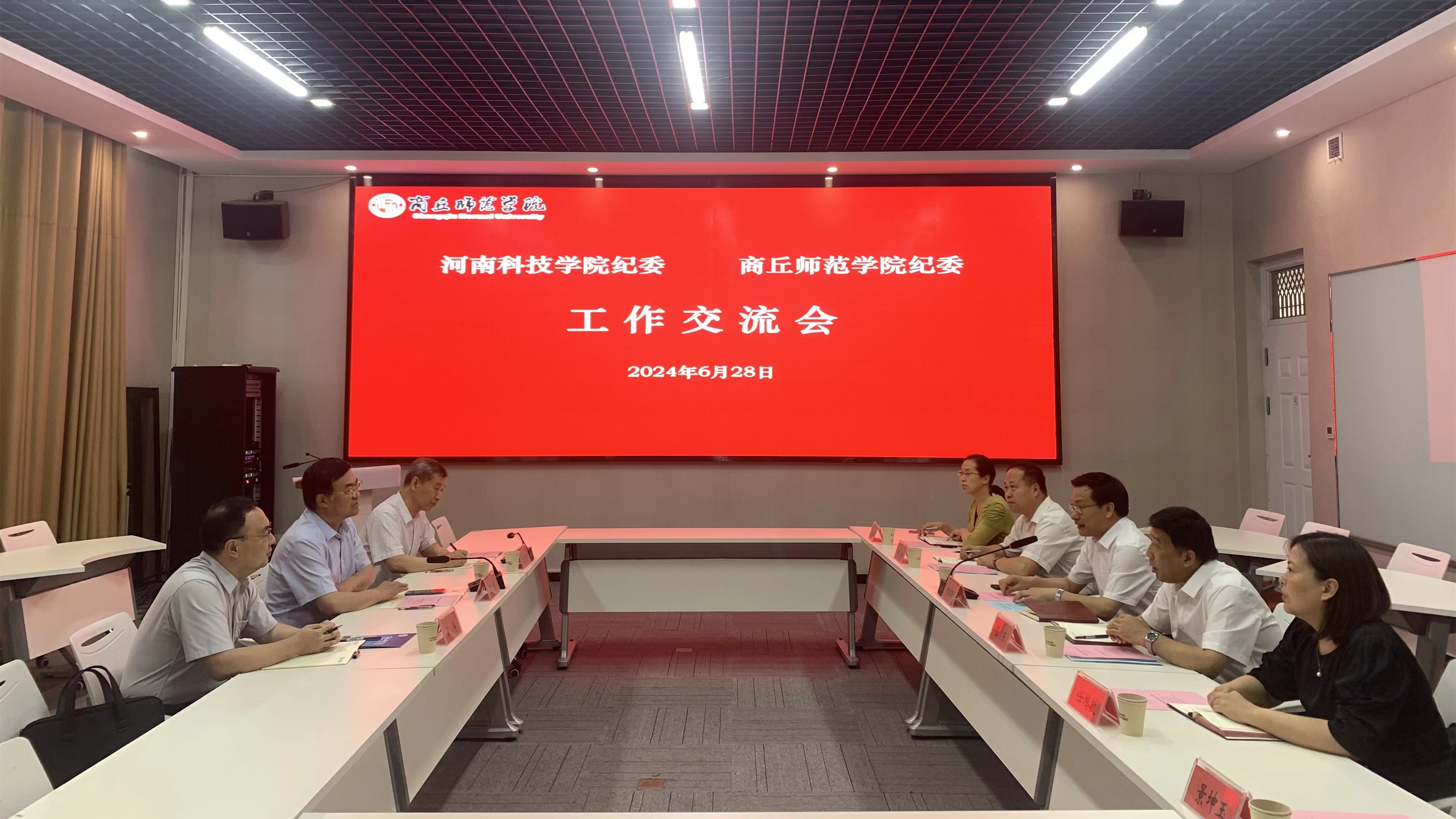 6月28日上午,河南科技学院纪委书记、监察专员贺杰一行3人来新2会员官网进行调研交流,双方在三商楼召开工作交流会。新2会员官网纪委书记、监察专员何瑞强主持会议。