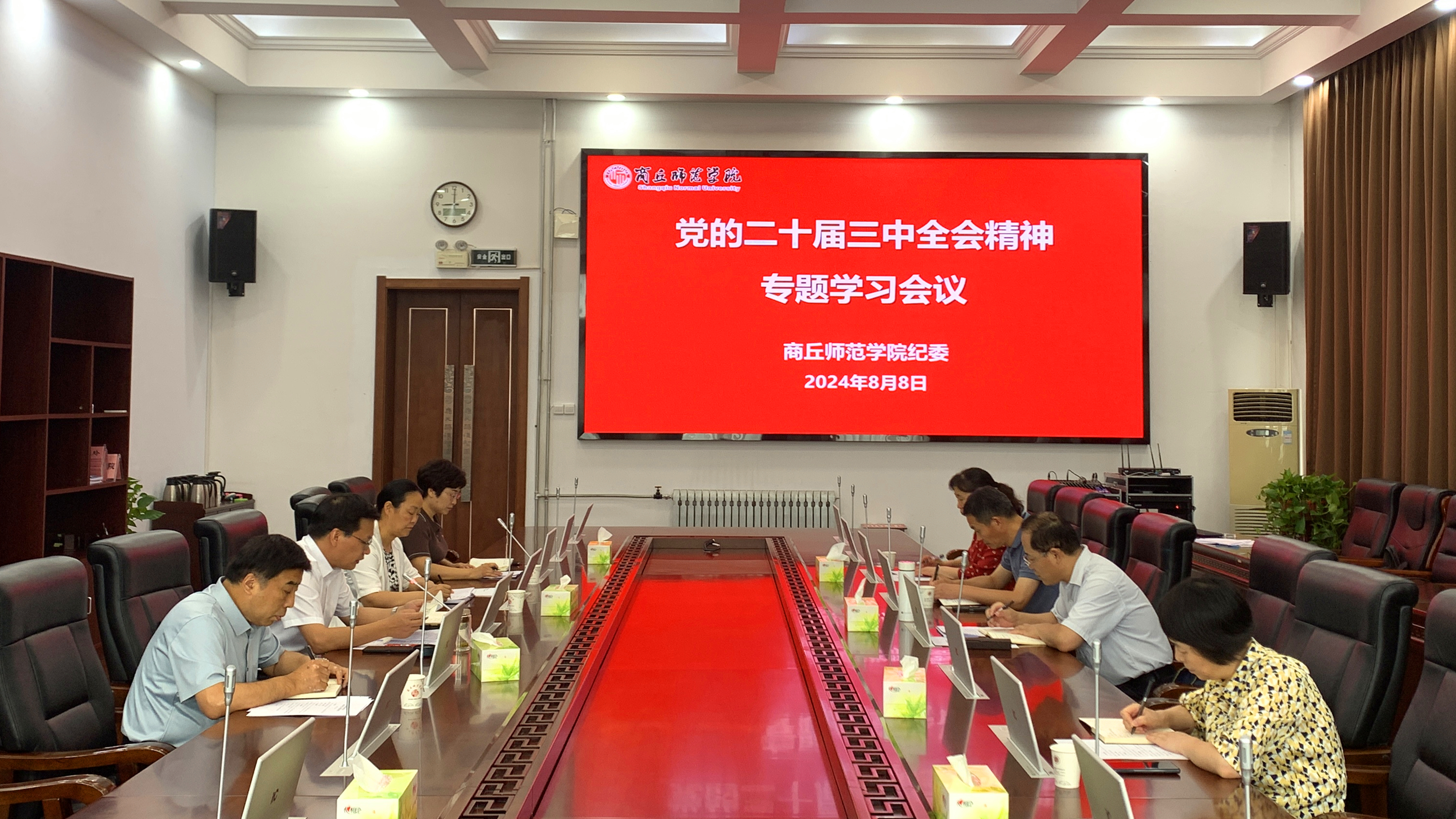 8月8日,校纪委在梁园校区归德楼召开党的二十届三中全会精神专题学习会,深入学习领会习近平总书记重要讲话和全会精神,结合纪检监察工作实际,研究贯彻落实工作。校纪委书记、监察专员何瑞强主持会议并讲话。