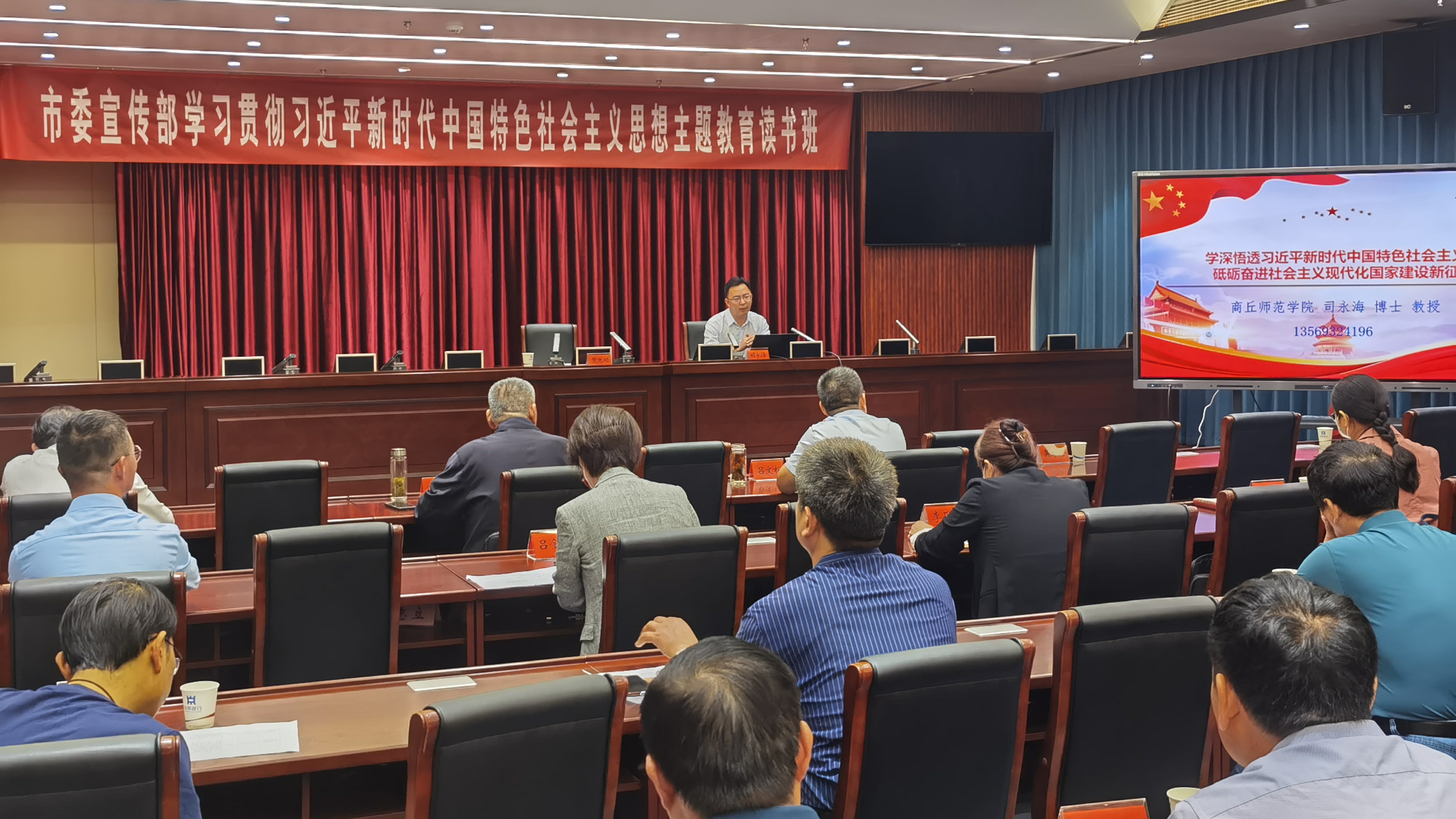 9月份,马克思主义学院院长司永海教授先后为商丘市委宣传部、商丘市睢阳区委、商丘市农林科学院作《学深悟透习近平新时代中国特色社会主义思想 砥砺奋进社会主义现代化国家建设新征程》的主题教育专题讲座。