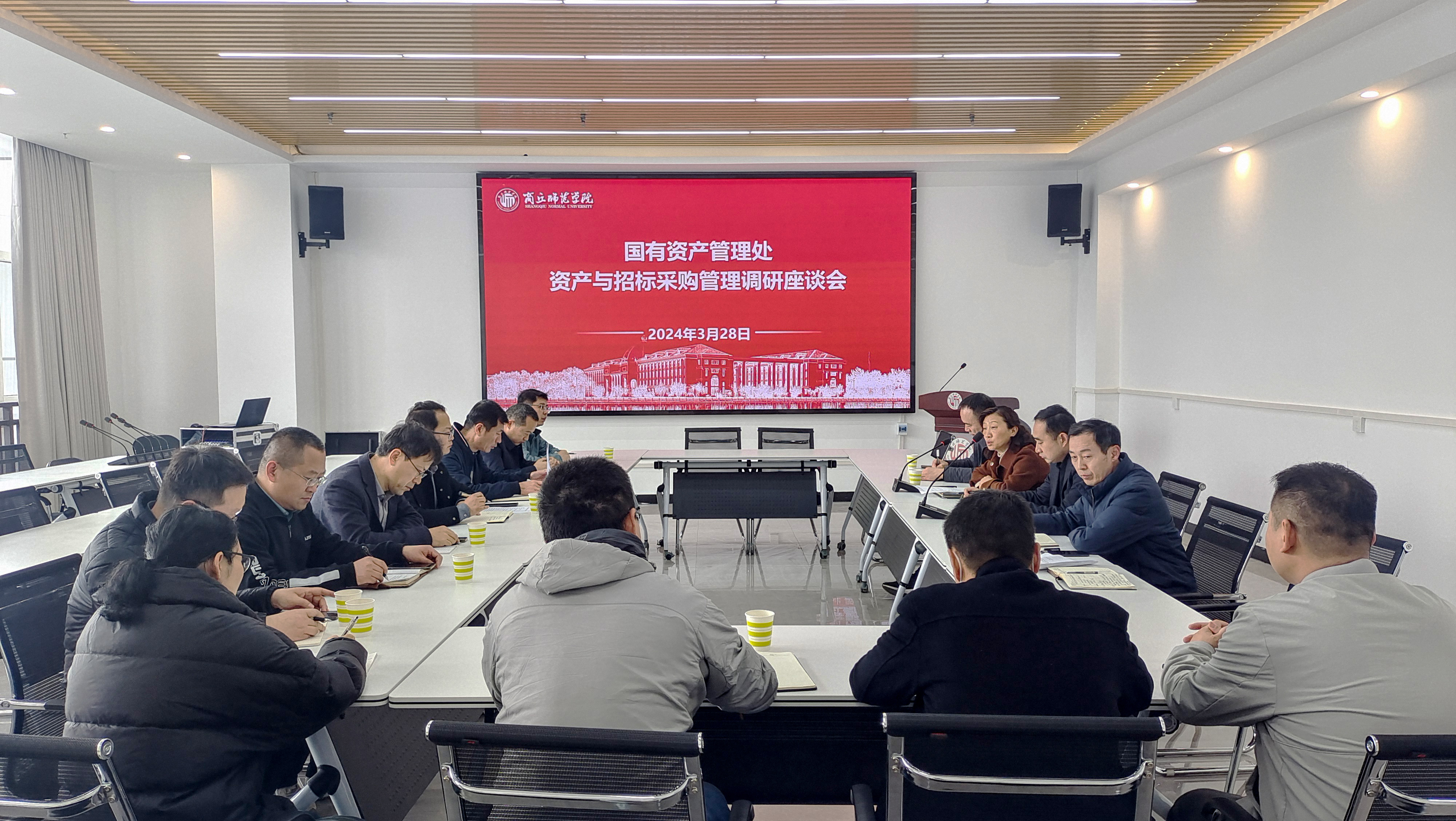 3月28日,国有资产管理处在睢阳校区建筑工程学院三楼会议室召开资产与招标采购管理调研座谈会。