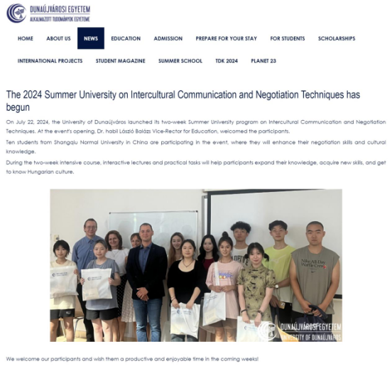 7月22日,新2会员官网学生赴匈牙利多瑙新城大学参加暑期夏令营活动,在此期间,匈牙利多瑙新城大学启动了为期两周的跨文化沟通与谈判技巧夏季大学项目。开幕式上,多瑙新城大学副校长拉斯洛·巴拉兹博士表示热烈欢迎此次参加夏令营的学生。